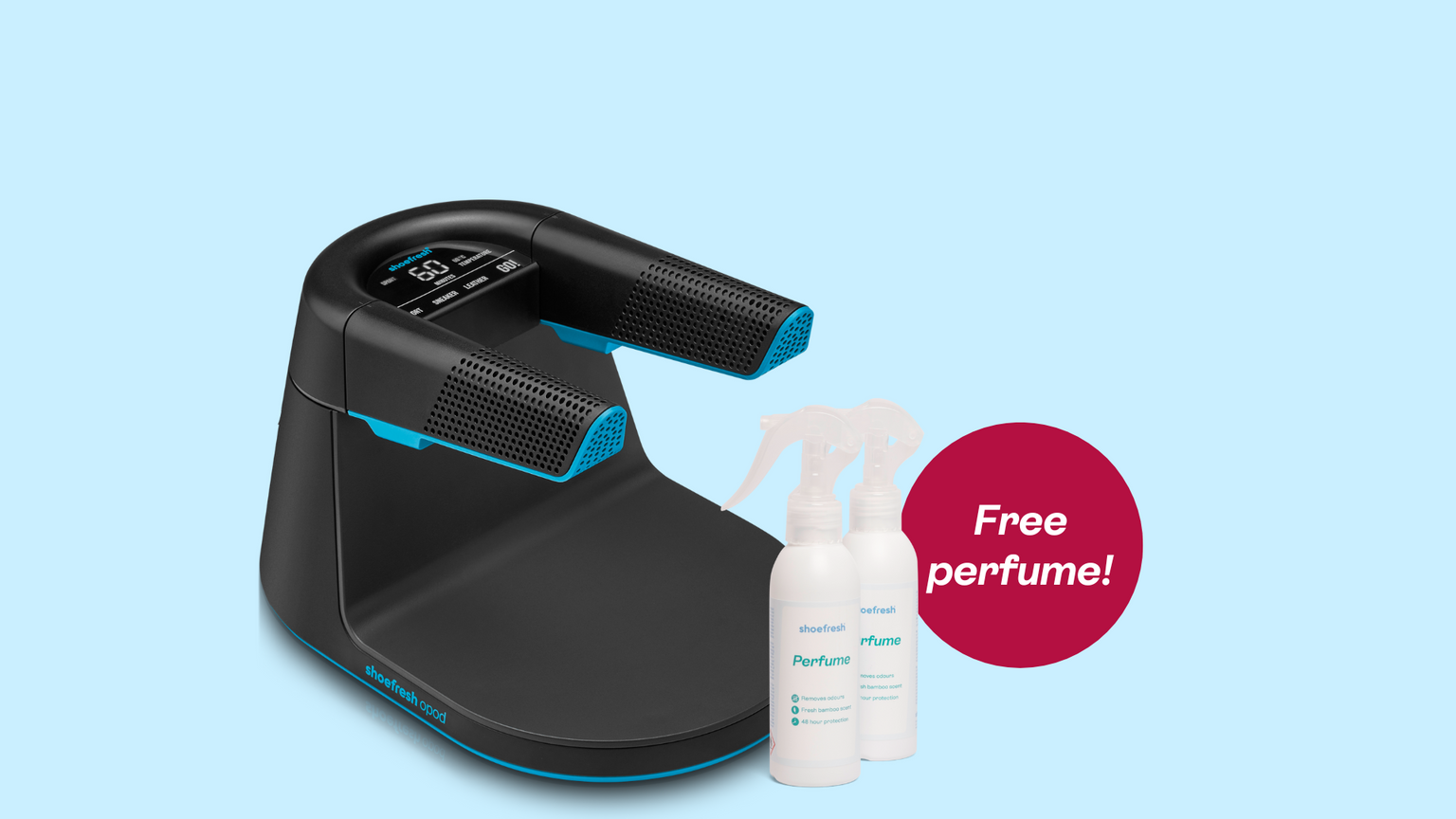 Bestellen Sie jetzt Ihren Shoefresh Opod und erhalten Sie zwei Flaschen Shoefresh Schuhparfum gratis dazu.